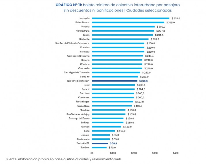 La rionegrina Bariloche experimentó el mayor aumento con un incremento del 263%, ubicando el pasaje urbano de los 270 pesos de enero en los 980 pesos de junio. El boleto barilochense es el segundo más caro del todo el país, solo superado por los 990 pesos relevados en Corrientes.